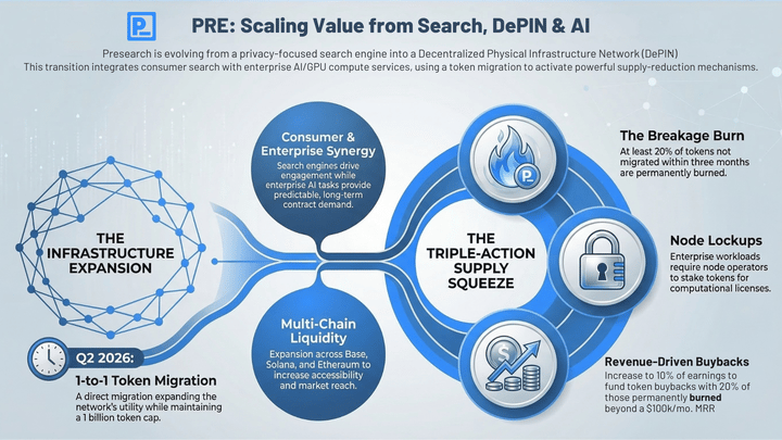 Participation in the network requires PRE staking, reducing circulating supply.Buybacks & Burns (Launching with Swap TGE, Q2 2026)